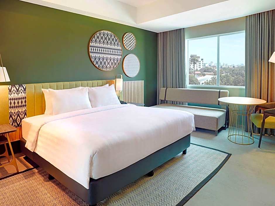 Junior Suite with 1 King Size Bed is 355 square feet and includes a king-size bed 150-183 width plus desk, cable tv, hairdryer, safe, bathrobes, and slippers.